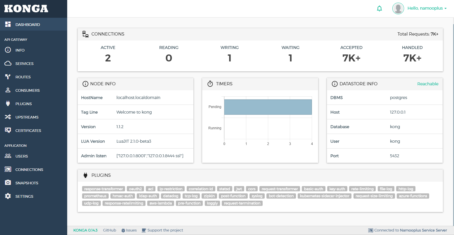 2019.05.28 기준 Konga의 버전은 0.14.3 이며 Kong 버전 1.0.0 이상과만 호환된다고 하니 유의하자.